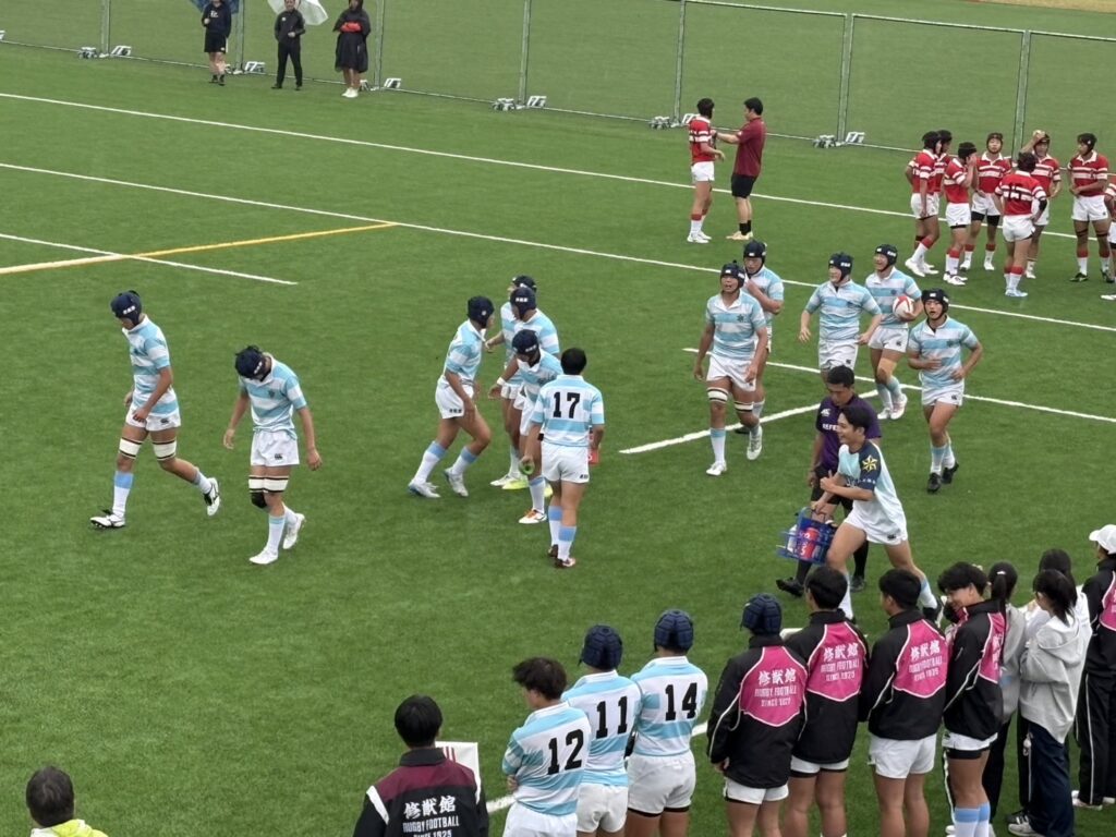 今回の試合は自分たちのラグビーができず、前半は苦戦しました。しかし、後半からモールを使っでトライを上げることができました。今回あがった課題を修正し、春大会にのぞみます。現役戦のあとは、OB戦、アフターマッチファンクションで福岡高校との交流がありました。先輩方が努力してこられた歴史と、両校の絆を感じる一日でした。
